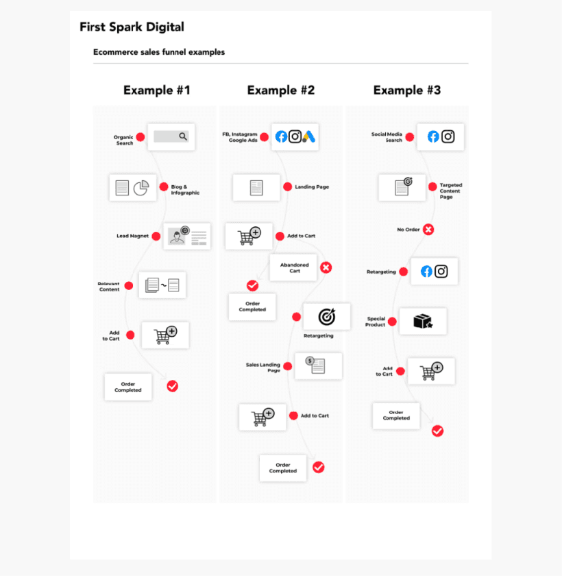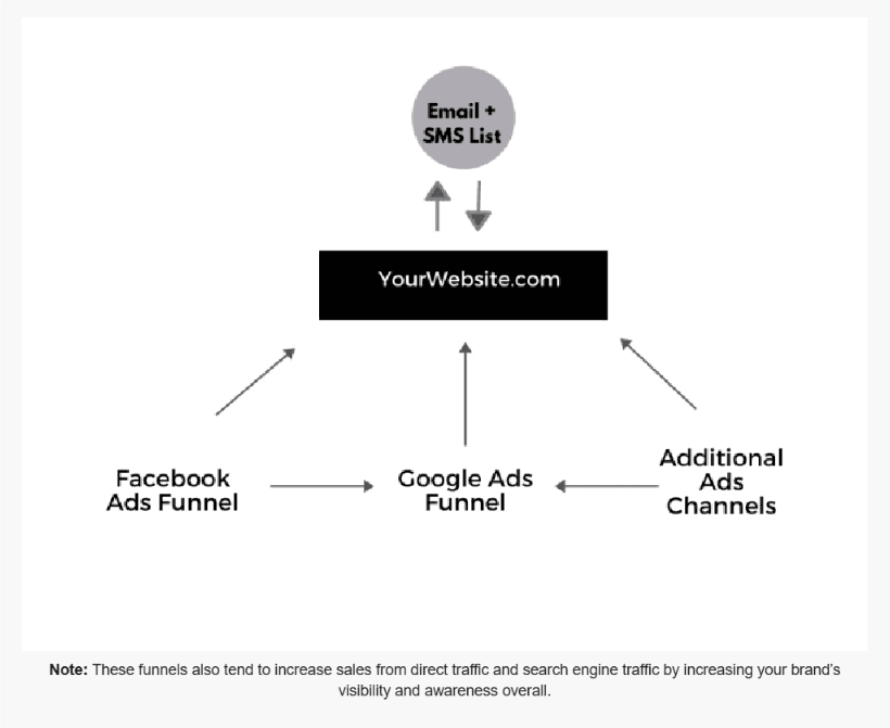For most eCommerce companies, Facebook/Instagram and Google will be the largest source of potential customers. You’ll want to focus on optimizing your funnels on each of these channels, or whichever channels are driving the most traffic and sales. Keep in mind that social media shoppers often go to Google to make a purchase after seeing an ad in their feed.