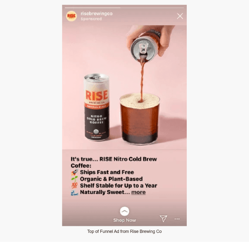 Here’s an example of a Top of Funnel Ad displayed on Instagram Story from the company Rise Brewing Co.