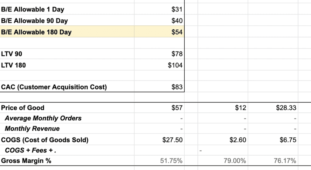 Do you know and understand your core eCommerce business metrics (CAC, COGS, LTV, margins, payback period, etc.)? You need to establish metric benchmarks and metric goals based on those benchmarks.