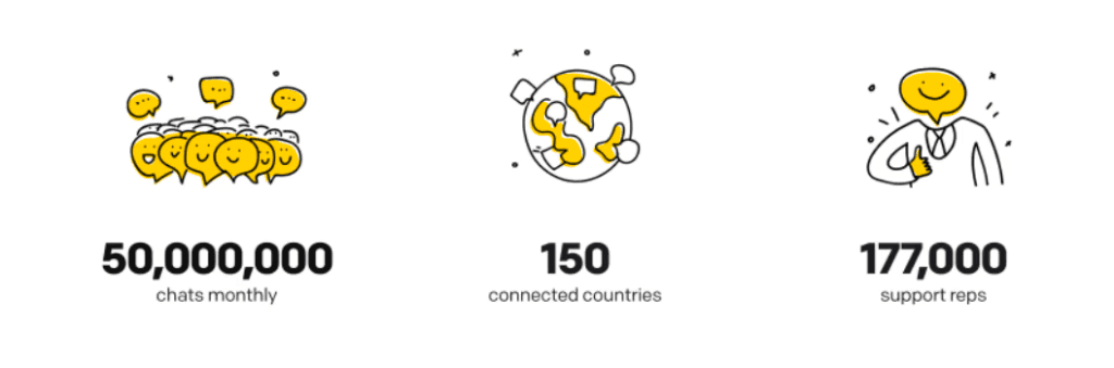 Additionally, LiveChat data points to show the volume of chats, countries (where it used), and the number of support reps. All ways to show that this tool is in broad use across the world.