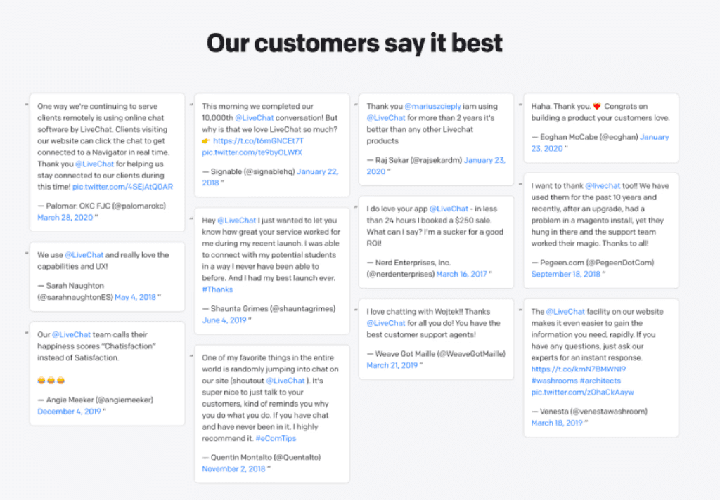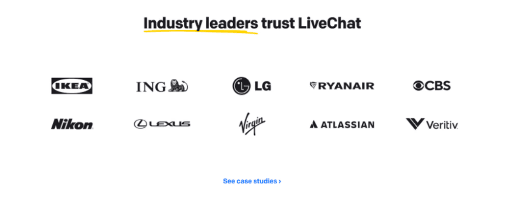 In another example from LiveChat, we have a few more social proof components at play.