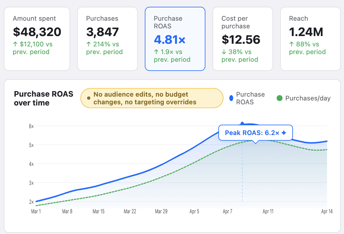 Here's what one month of progress looks like using automated rules and zero manual changes inside an ad account except new creative. This is modern media buying.